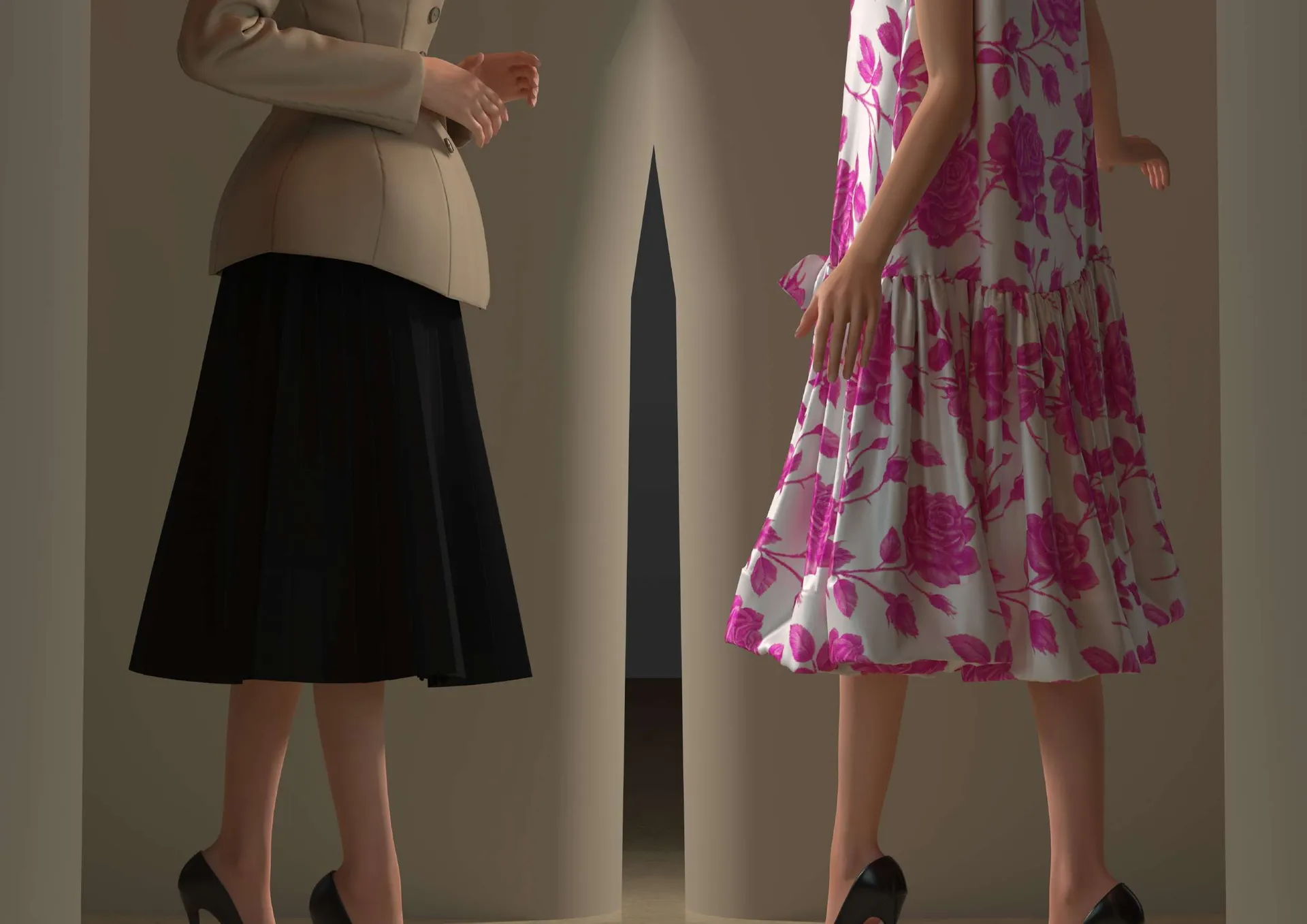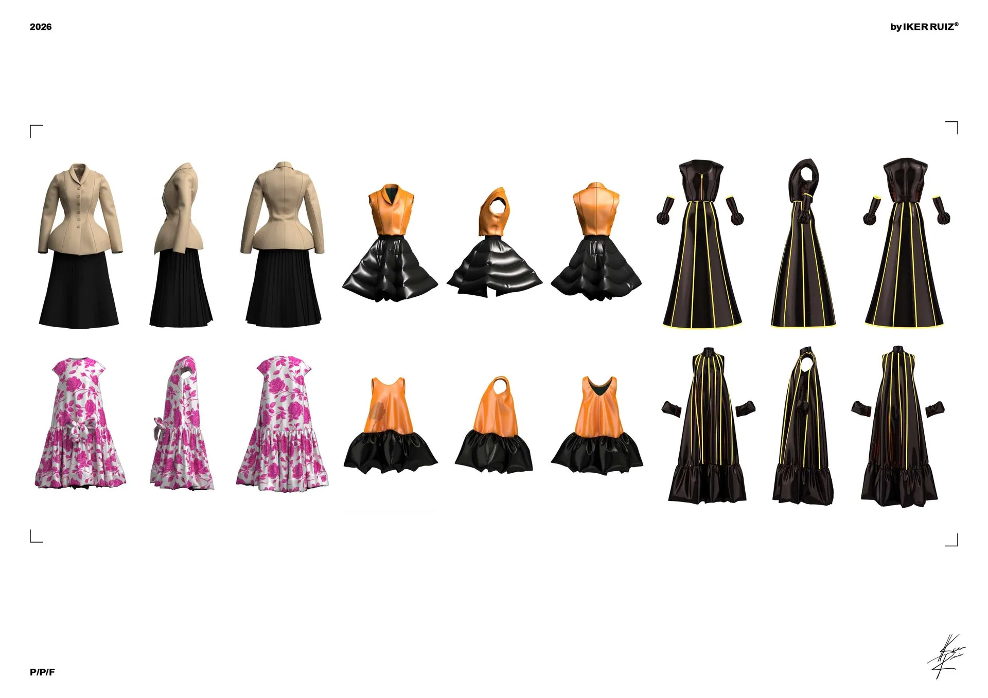 El proyecto presenta el trabajo del alumnado a partir de la reconstrucción digital y la exploración creativa de dos prendas y looks icónicos. Cada propuesta parte de una reproducción 3D fiel, respetando su esencia y construcción original, para después reinterpretarla en clave actual o proyectarla hacia un futuro especulativo, donde la prenda se convierte en un espacio de disrupción estética y conceptual sin perder su estructura. El proceso se apoya en un trabajo avanzado con STYLE3D Studio, Fabric e IA, integrando el modelado y los renders 3D con imágenes finales mejoradas mediante IA para potenciar el realismo, el acabado y la narrativa visual.